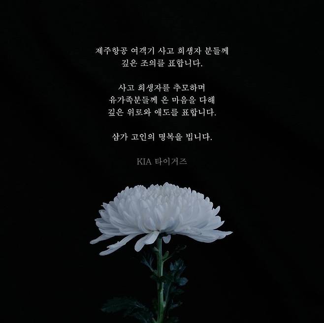 참사 직후 KIA 타이거즈는 구단 공식 SNS 계정에 ‘희생자를 추모하며 유가족들께 온 마음을 다해 깊은 위로와 애도를 표합니다’는 추념 글을 올렸다.