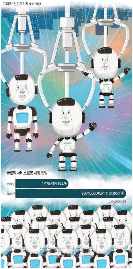 마켓앤드마켓이 전망한 서비스로봇 시장 규모는 2024년 471억달러(약 69조원)에서 2029년에는 986억5000만달러(145조2000억원)로, 연평균 15.9% 성장률을 기록할 것으로 기대된다. 서비스로봇에는 의료·배송로봇뿐 아니라 무인운반차량(AGV), 휴머노이드, 건설로봇 등 환경·공장·병원·공공 등 전문응용분야도 포함된다.