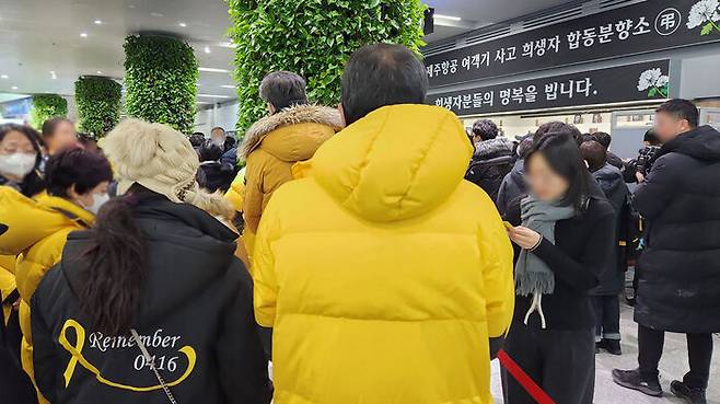 이들은 새해를 맞아 세월호 선체가 보관된 전남 목포신항을 방문한 후, 곧장 무안공항으로 이동해 조용히 분향했습니다.