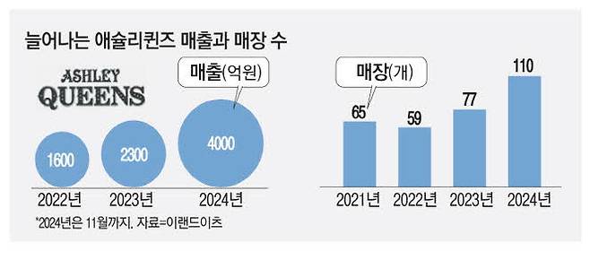 애슐리퀸즈는 지난해에만 백화점 내 4곳의 매장을 개장하면서 총 8곳(신세계 4곳, 롯데 3곳, 현대 1곳)을 운영하고 있다.
