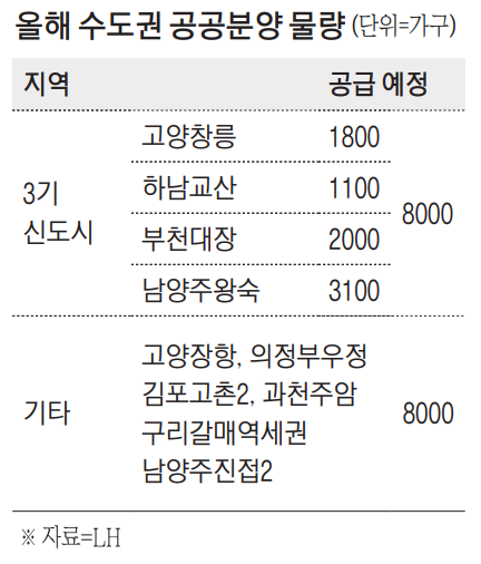 이를 출발 삼아 올해 수도권 알짜 입지에서 총 1만6000가구 규모 공공주택이 분양된다.