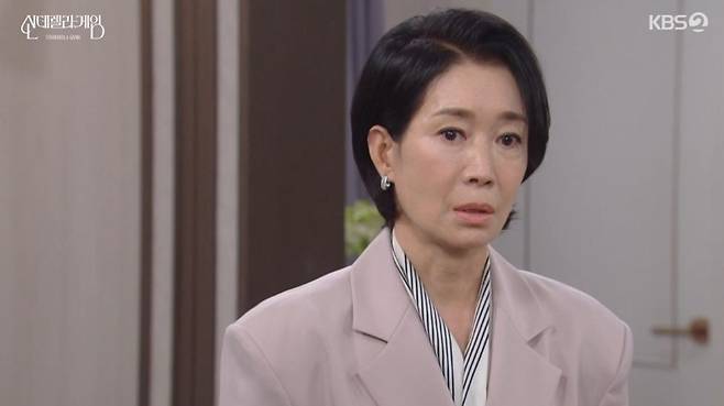 1일 KBS 2TV ‘신데렐라 게임’에선 하나(한그루 분)가 입양한 은총(김건우 분)이 자신의 핏줄임을 직감하는 여진(나영희 분)의 모습이 그려졌다.