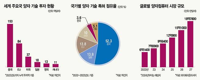 한국 역시 2023년 ‘양자컴퓨터 기술 원년’을 선언하고 양자컴퓨터 산업 투자에 뛰어들었다. 하지만 투자 금액, 기술 수준, 산업 규모 등에서 현저히 뒤떨어졌다. IT와 반도체 등 양자컴퓨터 관련 산업이 발달했지만 잘 연계시키지 못한다.