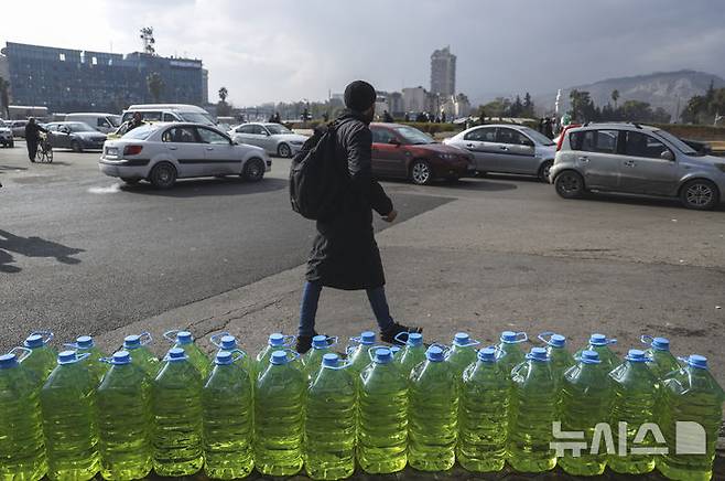 [다마스쿠스=AP/뉴시스] 지난해 12월 31일(현지시각) 시리아 다마스쿠스 시내에서 병에 담긴 경유가 판매되고 있다. 2025.01.02.