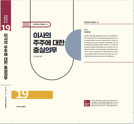 새로나온 책 '이사의 주주에 대한 충실의무'는 이상훈 경북대학교 법학전문대학원 교수가 17년동안 이사의 충실의무 조항에 대해 연구하고, 학술논문과 학회 발표·대중 강연 등에서 주장해온 내용을 집대성했다.