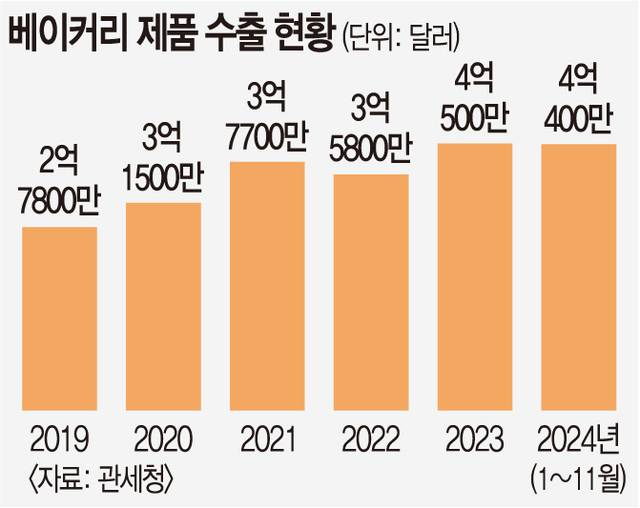 K베이커리의 지난해 수출 실적은 사실상 신기록 달성이 예고됐다. 이미 지난해 1~11월 수출액은 전년 동기 대비 8.3% 증가한 4억400만달러로 동기간 역대 최대 실적을 올렸다. 2023년 연간 수출액 4억500만달러에 근접한 수치다.