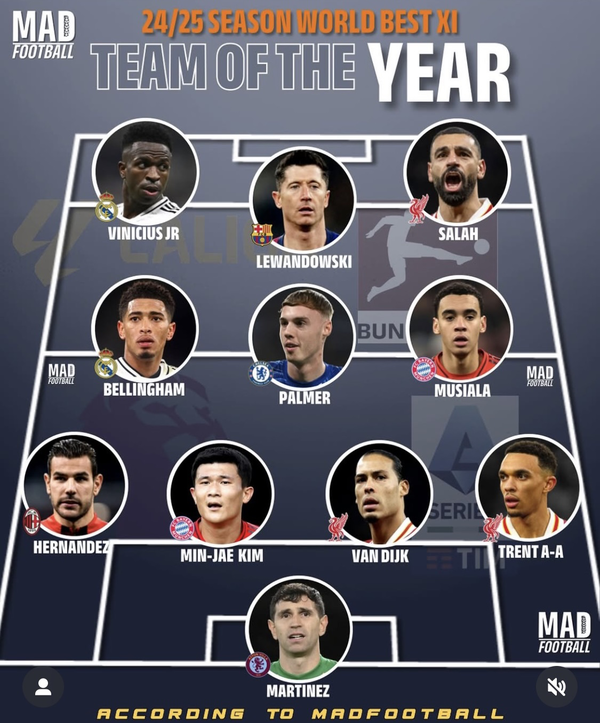 축구 콘텐츠 매체 ‘매드 풋볼’은 1일(한국시간) 2024-25시즌 ‘올해의 베스트11’ 명단을 발표했다.