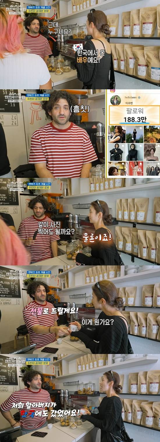이주빈은 "한국에서 온 배우"라고 자신을 소개했고, 이주빈의 정체가 궁금했던 종업원은 급기야 SNS에 검색하기 시작했다.