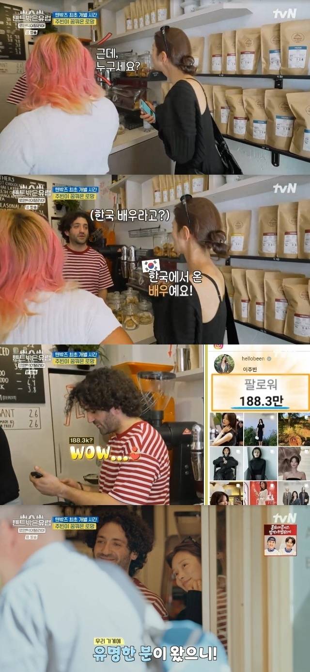 이날 이주빈은 뮌헨의 중심 마리엔 광장에 위치한 커피숍을 찾았다. 이때 직원은 카메라와 함께 다니는 이주빈에게 "근데 누구세요?"라고 물었다. 이에 이주빈은 "한국에서 온 배우"라고 자신을 소개했다.