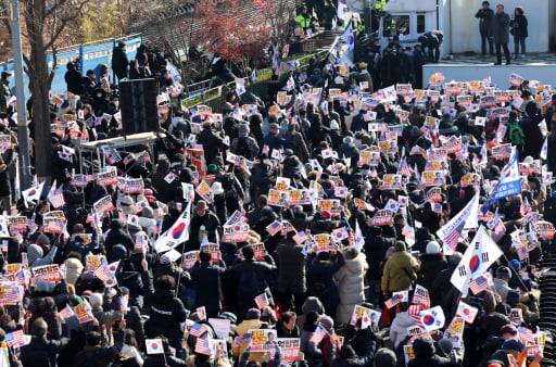한남동 관저 앞 모인 尹지지자들···"목숨 걸고 지켜라"