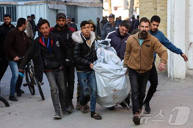 (가자 AFP=뉴스1) 우동명 기자 = 2일(현지시간) 팔레스타인 가자지구 병원에서 하마스와 전쟁 중인 이스라엘 군의 포격을 받은 부상자를 주민이 옮기고 있다. 2025.01.03
