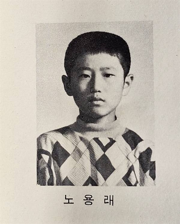 <오마이뉴스>가 입수한 1975년(1974학년도) 서천의 한 초등학교(당시 국민학교) 졸업 앨범에는 '13세 노용래'의 모습이 담겨 있었다. 당시 사진은 최근 언론에 보도된 모습과 상당히 닮았다.