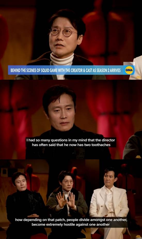 지난 1일 미국 ABC '굿모닝 아메리카'에서는 넷플릭스 오리지널 시리즈 '오징어 게임2'의 황동혁 감독과 배우 이병헌, 이정재가 출연해 작품에 대한 이야기를 나눴다.