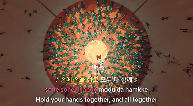 다음으로 등장하는 '둥글게 둥글게' 게임 속 동요의 유행 조짐도 심상치 않다. 넷플릭스 공식 유튜브 채널에 업로드된 '오징어 게임2' 영상 중 '둥글게 둥글게' 음원 비디오가 특히 높은 조회수를 보이고 있다.
