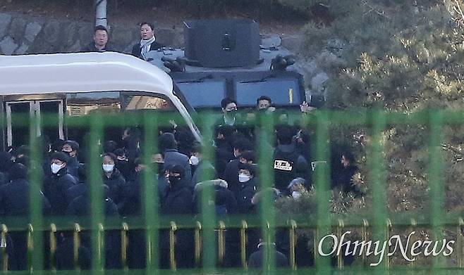 | ▲ 대통령 관저에서 철수하는 공수처 고위공직자범죄수사처가 윤석열 대통령의 체포영장 집행을 시도한 3일 서울 용산구 한남동 대통령 관저 경내에서 경찰 병력과 공수처 수사관 등이 내려오고 있다. |