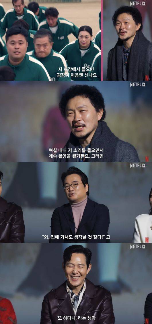 그러자 이정재는 “저는 개인적으로 ‘무궁화 꽃이 피었습니다’를 내가 ‘또 하다니’라는 생각에. 세상에 내가 저 죽음의 게임을 또 하다니 (싶었다)”라고 말해 웃음을 자아냈다.