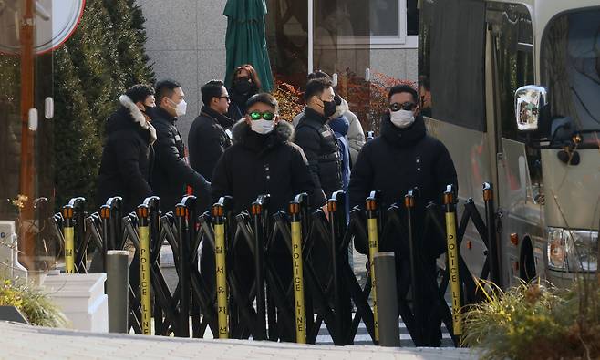 | ▲ 12.3 윤석열 내란사태를 수사 중인 고위공직자범죄수사처 수사관과 경찰이 3일 오후 용산구 한남동 대통령 관저에서 윤석열 대통령의 체포영장 집행이 무산되자 철수하고 있다. |