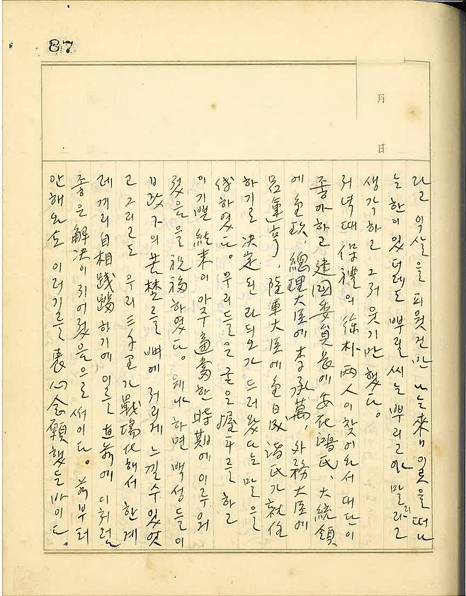 소위 대동아전쟁 초기에 일본이 필리핀과 버마를 독립시켜주었을 때 그네들도 역시 오늘날 우리들처럼 기뻐했을 것이다. 그러니 기뻐 날뛰는 것만이 우리의 능(能)이 아니다. 하루바삐 훌륭한 나라, 세계에 으뜸가는 나라를 만들도록 모든 우리가 힘써야 할 것이다.