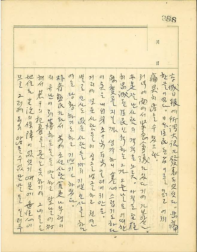 경성일보에 소위 대조(大詔)가 발표되었었다. 비통한 글이었다. 일본 신민 된 자 이를 읽고 어찌 통곡치 않을 수 있으랴.