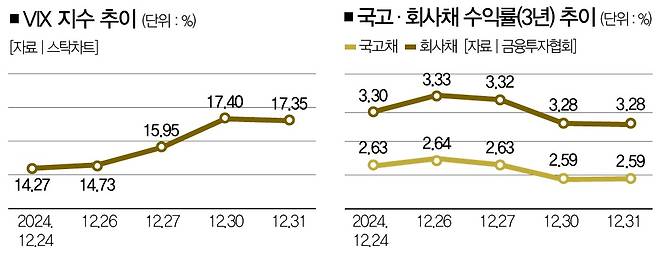 # 증시 반등을 이끈 건 정치적 불확실성이 해소될 수 있다는 기대감이었다. 실제로 이날 코스피지수는 고위공직자범죄수사처(공수처)가 윤석열 대통령의 체포영장을 집행한다는 소식에 2451.96포인트까지 상승했다. 하지만 오후 1시 30분께 공수처가 체포영장 집행을 중지하자 곧장 하락세로 돌아섰다. 정치적 불확실성을 해소하는 게 증시 반등의 열쇠란 사실이 확인되는 순간이었다.