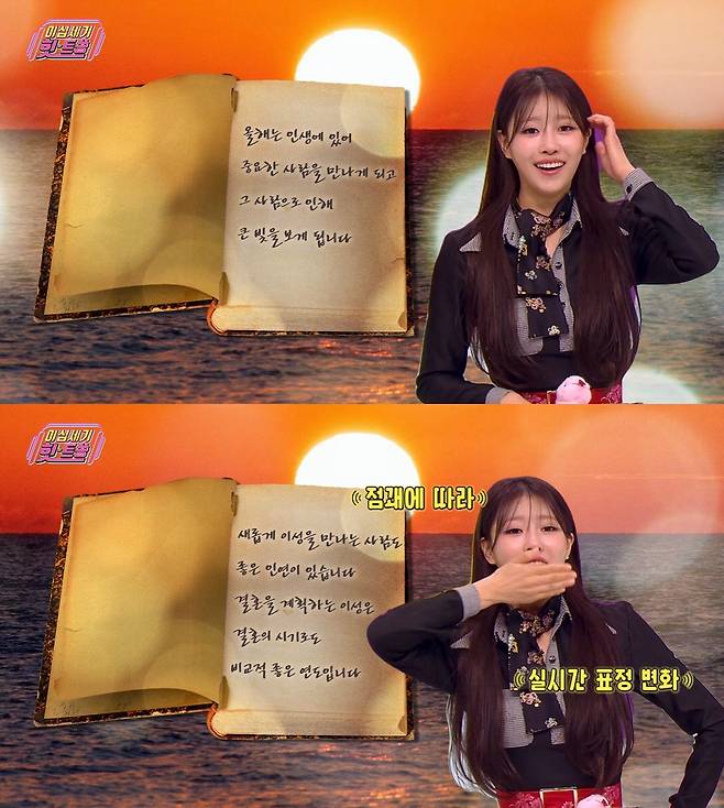이어 "미주가 저보다 빨리 면사포를 쓸 수 있다"라며 "올해는 인생에 있어 중요한 사람을 만나게 되고 그 사람으로 인해 큰 빛을 보게 됩니다. 새롭게 이성을 만나는 사람도 좋은 인연이 있습니다. 결혼을 계획하는 이성은 결혼의 시기로도 비교적 좋은 연도입니다"라는 이미주의 운세도 소개했다.