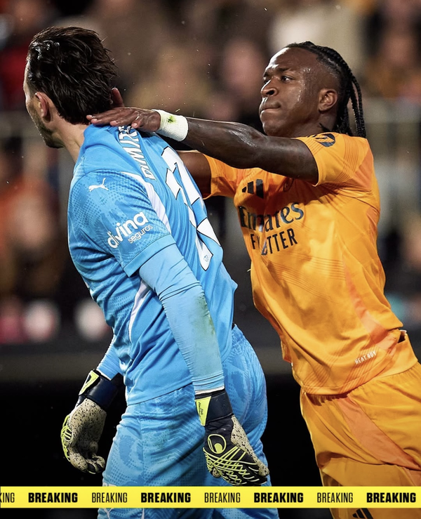 비니시우스 주니오르가 상대 골키퍼의 도발을 참지 못하고 폭력을 휘둘렀다.