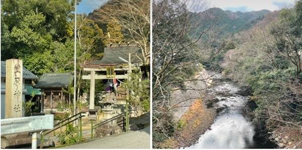 | ▲ 니조보 장승이 있는 가야하라 마을 가운데에 이누가미가와 강이 흐르고 마을 북쪽에 가야하라 신사가 있습니다. |