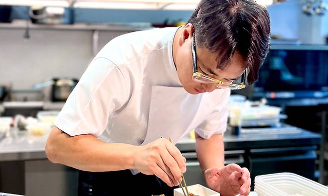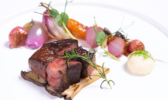 코스모스 울릉도 ‘울야식당’ 주낙진 셰프 송곳산 아래 울릉도 리조트 코스모스 ‘제1회 아름다운 식사공간’ 수상 영예 지역서 온전히 나고 자란 식재료 활용 ‘명이 페스토 파스타’ 특유 명이 향 가득 산채·약초 먹여 키운 약소 스테이크 일품 “울릉도 자연서 새로운 영감 받고 배워”