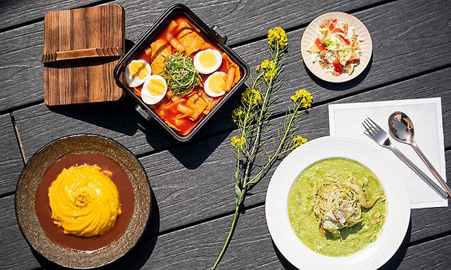 울릉도라는 특수한 지역에서 음식을 하다 보니 지역의 특산물과 잘 알려지지 않은 재료로 손님들이 새로운 경험을 하도록 메뉴를 구성한다. 현재는 한식 반상을 조식으로 제공하고 있는데 이 반상 위에 울릉도 나물이나 오징어내장 같이 현지 식재료를 이용한 반찬들을 제공하고 있으며 울릉도 현지 맛을 선보일 수 있는 저녁 코스요리를 하고 있다.