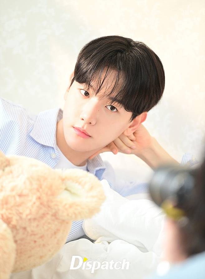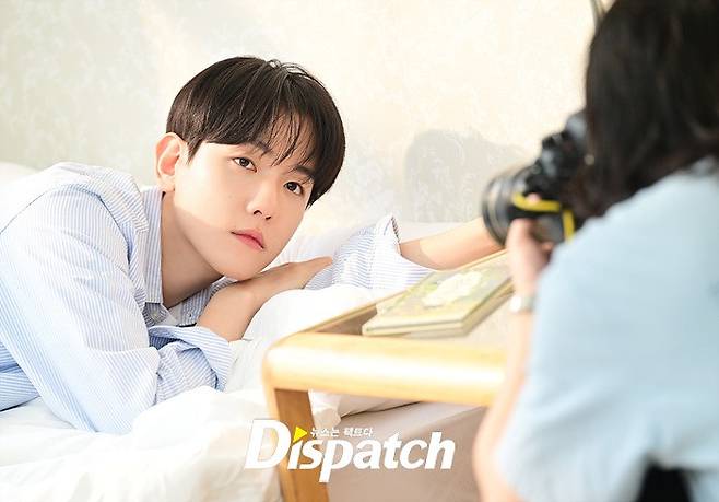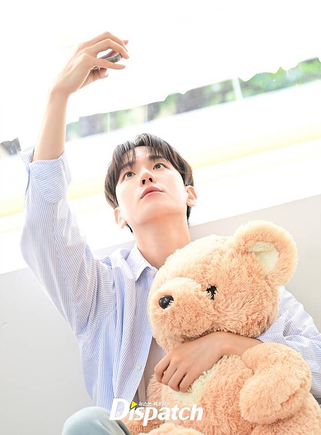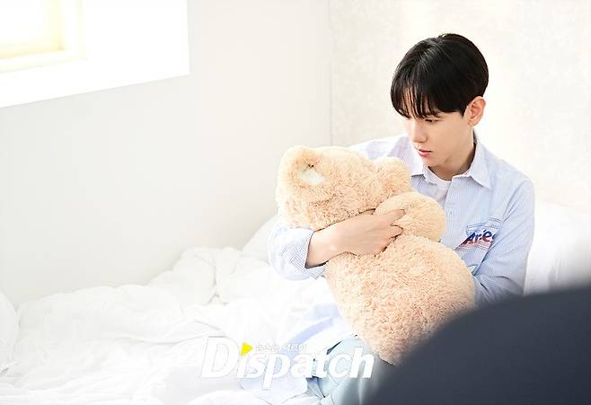 침대에서 일어나 곰인형에 얼굴을 부비고, 양치를 하고, 커튼을 젖혀 풍경을 감상하기도 했습니다. 백현은 쥐어주는 소품마다 자연스럽게 포즈를 완성했는데요.