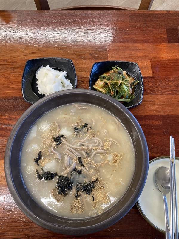 그날 밥상 위로 나온 칼옹심이 메밀 막국수를 한 술 입에 넣자 그 구수하고 담백한 맛이 금세 입맛을 돋우었다. 내가 아주 맛있게 옹심이와 메밀 칼국수 맛에 찬사하며 먹자 관광해설사는 그 조리법을 자상히 일러 주었다.