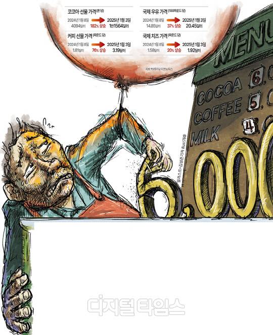 그런가하면 제주 지역에서 로컬 카페를 운영하는 D씨는 새해부터 초콜릿이 들어간 디저트 제품 판매를 중단했다. 초콜릿의 주원료인 코코아(카카오 열매를 가공한 것)의 경우 지난달 30일(현지시간) 미국 뉴욕 국제상업거래소(ICE) 선물거래소에서 거래되는 선물 가격이 종가 기준 톤당 1만1241달러를 기록했다. 지난해에만 165.24%나 폭등했다.