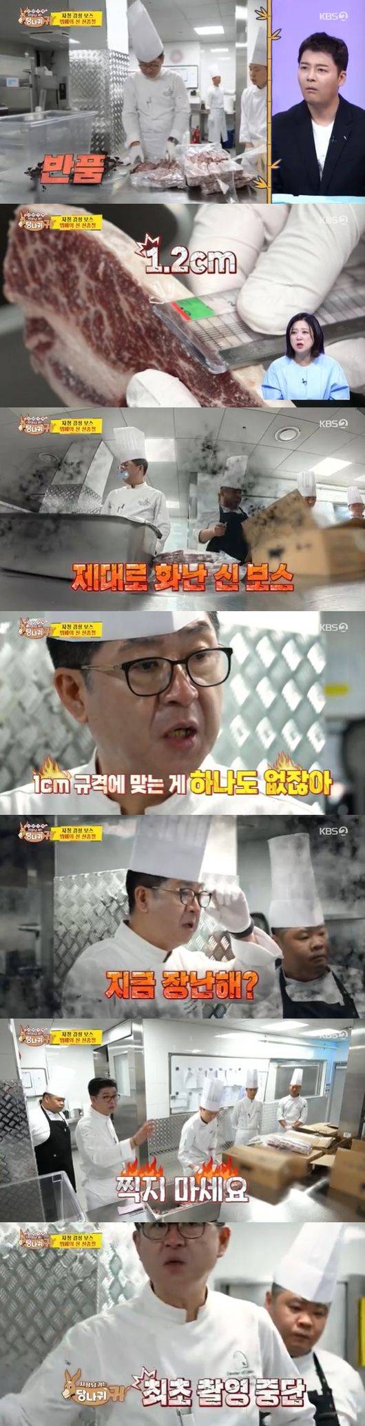 그러나 LA 갈비 규격이 모두 들쭉날쭉이었고, 1cm를 넘어가 신종철 보스의 분노가 폭발했다. 신종철은 "전부 1.3cm 넘는 걸 주면 어떡하냐? 규격에 맞는 게 하나도 없다"며 "구매 팀이 1차 검수 후 셰프들이 2차 검수를 제대로 안한 것"이라고 지적했다.