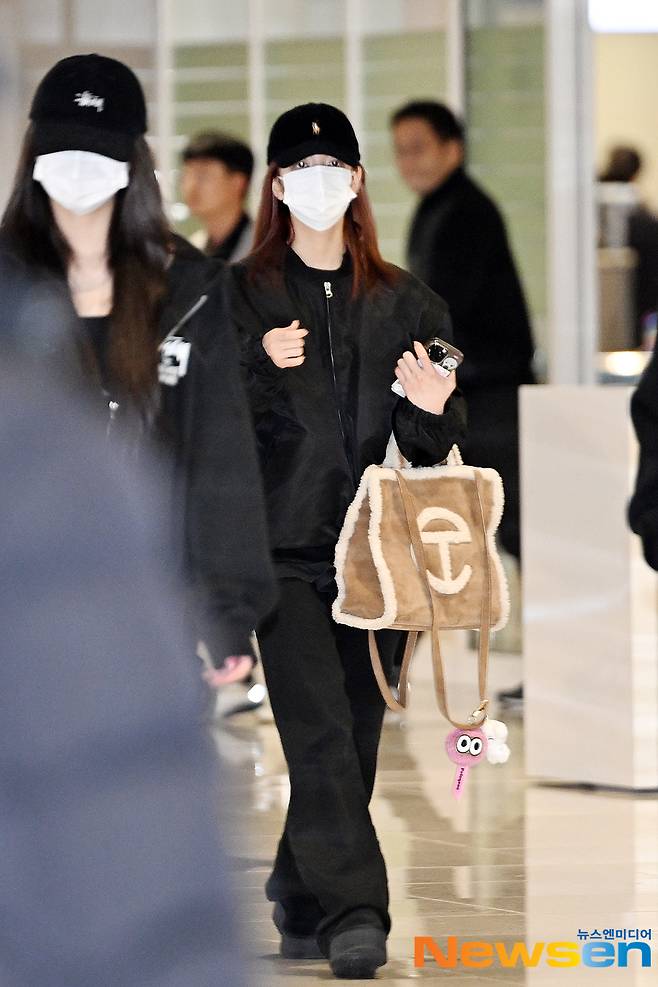 있지(ITZY) 멤버 예지, 리아, 류진, 채령, 유나가 1월 5일 오후 인천 중구 운서동 인천국제공항 제 2여객터미널을 통해 해외 일정을 마치고 중국 광저우에서 입국하고 있다.