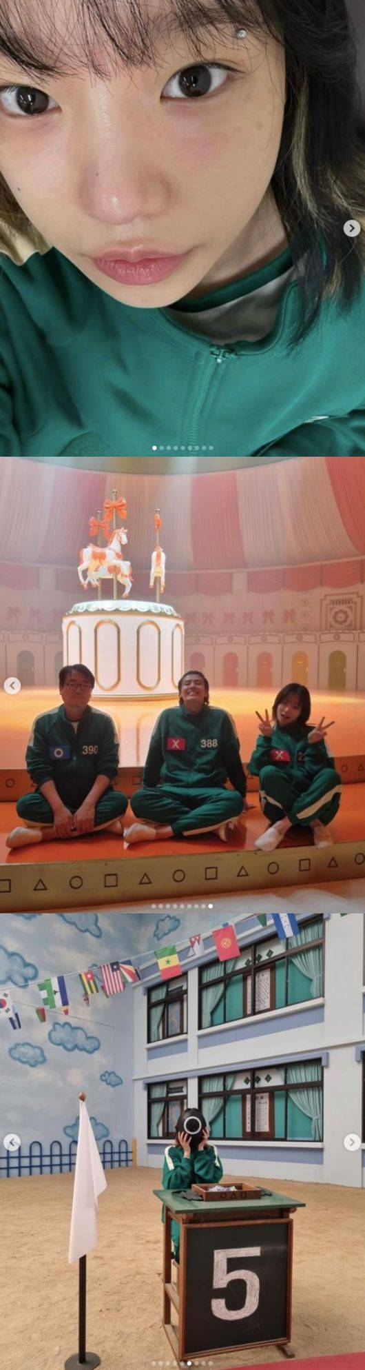 6일 조유리는 자신의 소셜 미디어 계정을 통해 “222222222222222222222”라는 글과 함께 ‘오징어 게임’ 시즌2 촬영 비하인드 컷을 대방출 했다.