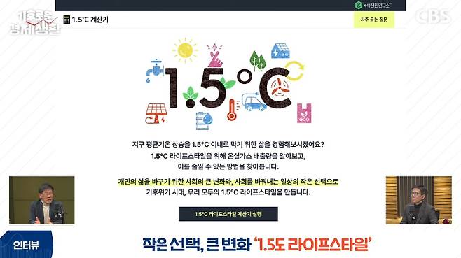 ◆ 홍종호> 책에 1.5도 계산기 얘기를 하셨거든요. 내가 하루를 사는 데 탄소를 얼마나 배출하는지, 또는 1년을 살면 얼마나 배출하는지를 계산할 수 있는 인터페이스 같은데요. 직접 개발하셨나요?