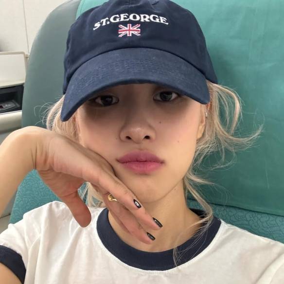 로제의 사복에서 단골로 등장하는 이 모자는? 브랜디멜빌의 '캐서린 조지 캡(Katherine St. George Cap)'이다. 네이비 컬러의 코튼 소재 볼캡으로 앞면의 세인트조지 영문과 영국 국기 자수가 포인트. 무심하게 툭 걸쳐주면 아웃핏의 킥이 되어줄 아이템으로, 국내에서는 2만원 대로 구매할 수 있다.