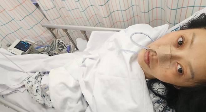 사진에는 환자복을 입은 고현정이 창백한 얼굴로 병원 침대에 누워서 치료를 받고 있는 모습이 담겨 있다. 전보다 살이 더 많이 빠진 고현정은 야윈 모습으로 안쓰러움을 자아낸다.