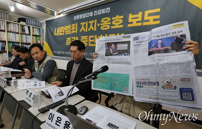 또 "지난달 27일 <매일신문>의 '석민의 News픽'이라는 코너는 '종북·친북 좌파가 조·중·동, 더불어민주당, 국민의힘 한동훈계와 연합한다'는 식의 극우 편향 시각이 담겼다"며 "이에 <매일신문> 독자위원회도 지난 12월 회의에서 '언론사가 아니라 마치 선전·선동 기관지 같은 느낌'이라고 지적했다"고 설명했다.