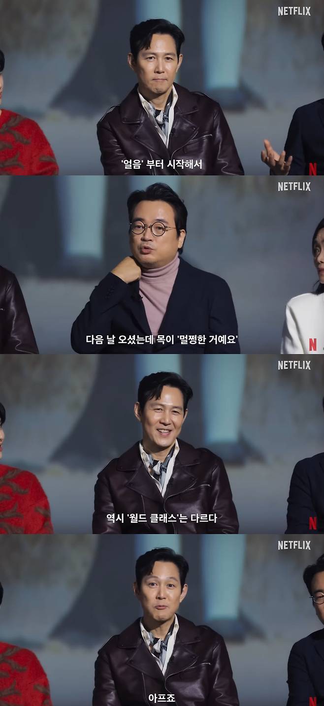 이어 이서환은 "저같은 경우는 며칠 간다. 역시 월드클래스다 목이 괜찮을까 싶을 정도다"라며 이정재에게 놀라움을 표했다.