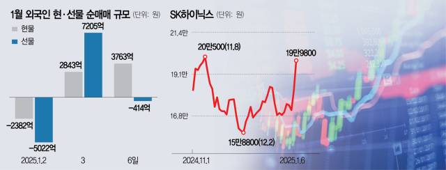바닥론이 확산되며 외국인이 2거래일째 순매수한 데다 7일(현지 시간) 세계 최대 전자·정보기술(IT) 전시회 CES 2025 개막을 앞두고 인공지능(AI) 반도체, 양자컴퓨터 등 관련주에 대한 기대감이 커진 영향이다.