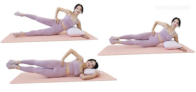 TIP 팔이나 어깨가 힘들면 완전히 누워서 진행해도 된다.
