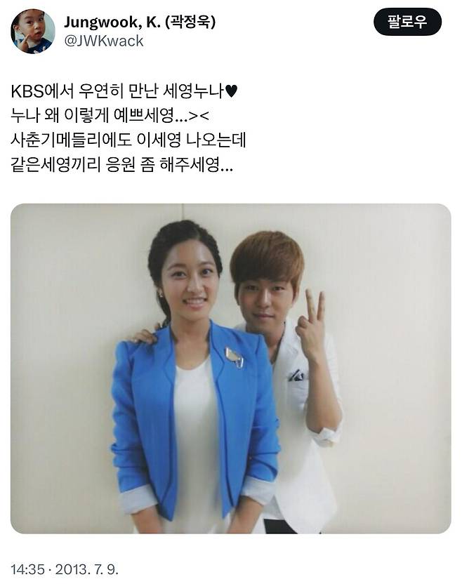 이 둘의 결혼 발표 이후에 곽정욱이 과거 본인의 채널에 올렸던 글이 재조명되기도 했다. 그는 2013년 7월 박세영과 찍은 사진을 올리며 "KBS에서 우연히 만난 세영누나, 누나 왜 이렇게 예쁘세요. '사춘기 메들리'에도 이세영 나오는데 같은 세영끼리 응원 좀 해주세요"라는 멘트를 함께 올려 뒤늦게 발견한 팬들이 웃음을 자아내기도 했다.
