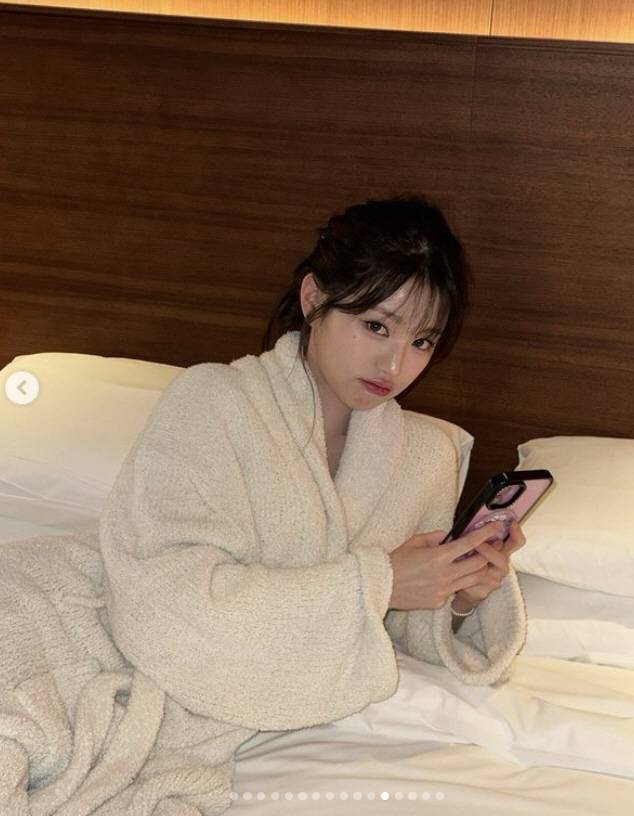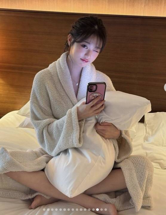 샤워가운 입은 장원영이라니..욕조와 침대 셀카로 '파격' 새해 인사