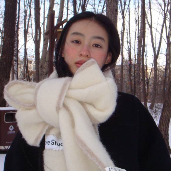 가장 재기 발랄하게 머플러를 매는 방법은 얼굴 바로 아래에서 리본 모양을 만드는 거예요. 선물 상자 위의 리본을 묶듯이 머플러를 묶어보세요. 머플러의 두께가 두꺼울수록 귀엽습니다.