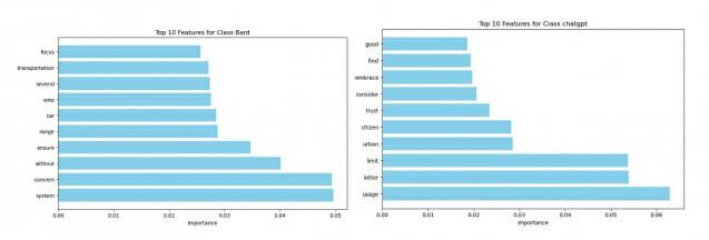 연구팀은 챗GPT, 라마(LLaMA), 구글 바드(Google Bard), 클로드, 퍼플렉시티(Perplexity) 등 5개 주요 AI 언어모델이 생성한 텍스트를 각각 구분하는 데도 성공했다. 데이터 전처리와 TF-IDF 벡터화 기법을 활용한 다중 분류에서 랜덤 포레스트는 97%의 정확도와 93%의 정밀도, 94%의 재현율을 기록했다. XGBoost는 94%의 정확도와 90%의 정밀도 및 재현율을 보였으며, RNN은 88%의 정확도, 90%의 정밀도, 72%의 재현율을 달성했다.