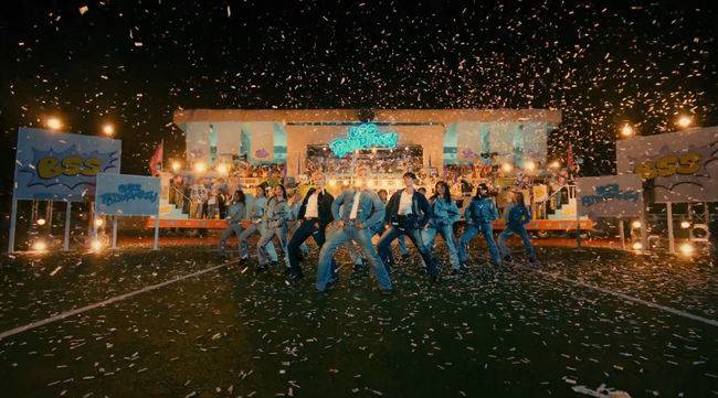 함께 공개된 뮤직비디오에서도 '행복 메이커' 부석순의 면모가 돋보였다. 야근에 시달리는 직장인, 답답한 교실에 갇혀 공부하는 학생, 잔소리와 다툼을 이어가는 모녀까지, 남녀노소 할 것 없이 청바지로 갈아입고 밖으로 뛰어나오는 모습은 해방감을 느끼게 한다.