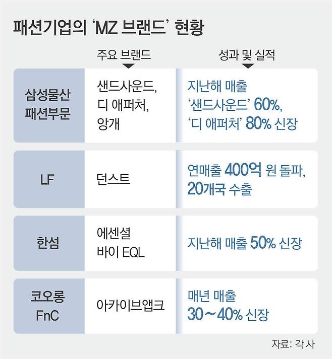 경기 불황에 따른 소비심리 침체로 고전 중인 패션 기업들이 MZ세대(밀레니얼+Z세대)가 주축이 돼 만든 신생 브랜드를 앞세워 활로를 찾고 있다.