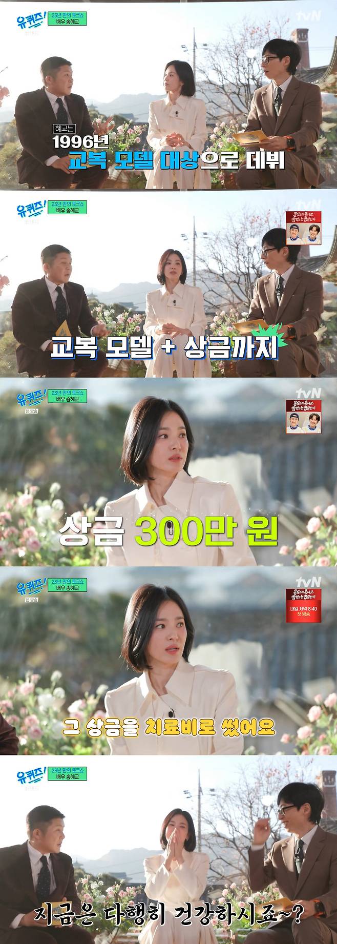 8일 방송된 tvN '유 퀴즈 온 더 블럭(연출 이기연, 이종혁 작가 이언주)' 275회에는 배우 송혜교가 출연했다. 무려 23년 만에 토크쇼에 출격했다는 송혜교는 이날 "새해에 인사드리게 돼 영광"이라며 긴장감을 감추지 못 했다.