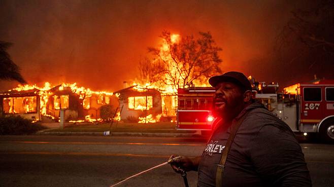 ▲ 캘리포니아주 이튼서 발생한 산불로 불에 타는 민가